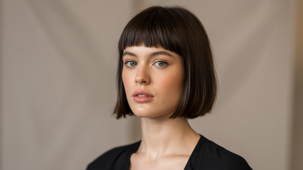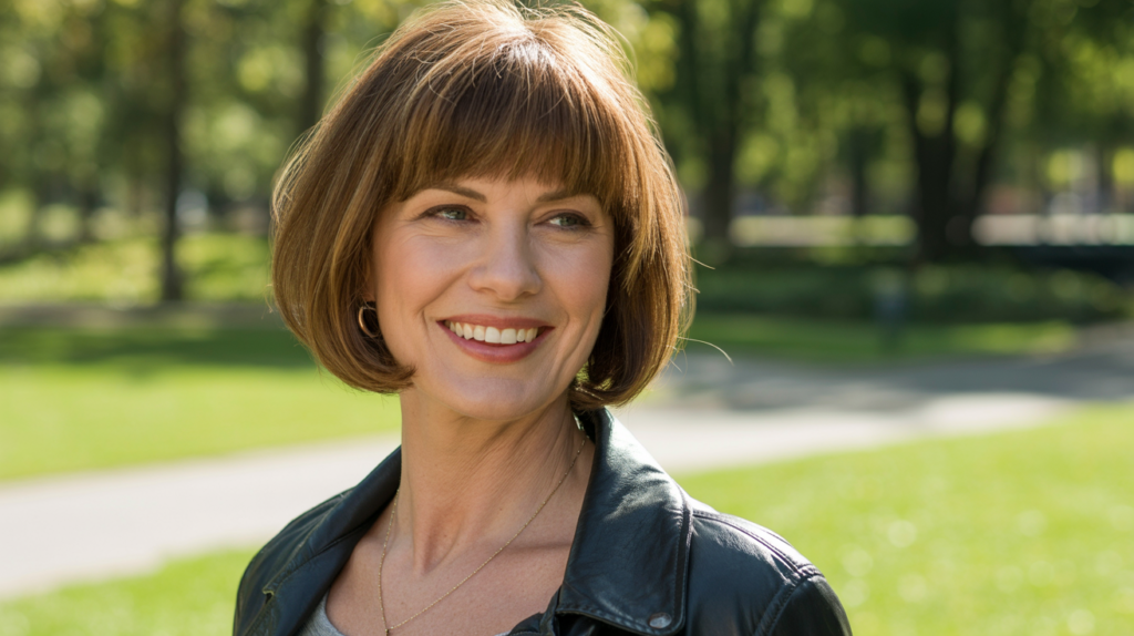 This bob paired with fringe is a stylish, no-fuss option that creates a polished look while staying easy to maintain for daily wear.