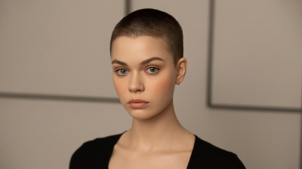 Simplicity at its best, this very short haircut offers a minimalist look that is incredibly easy to maintain and perfect for everyday looks.