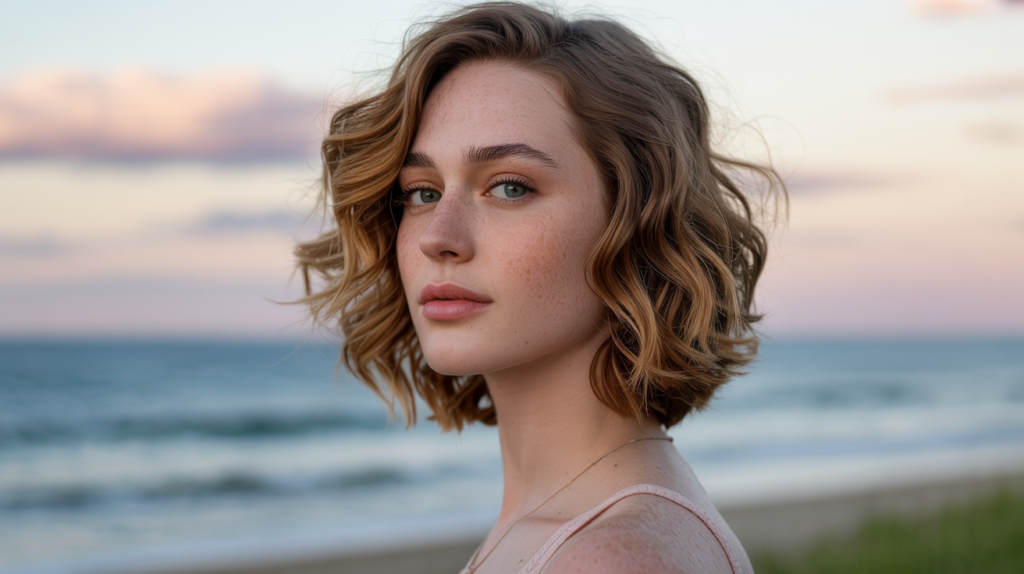 Casual and carefree, the beach waves add texture to the hair, making this short haircut a perfect go-to for a youthful summer look.
