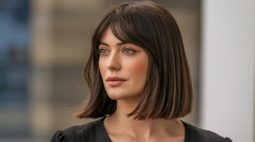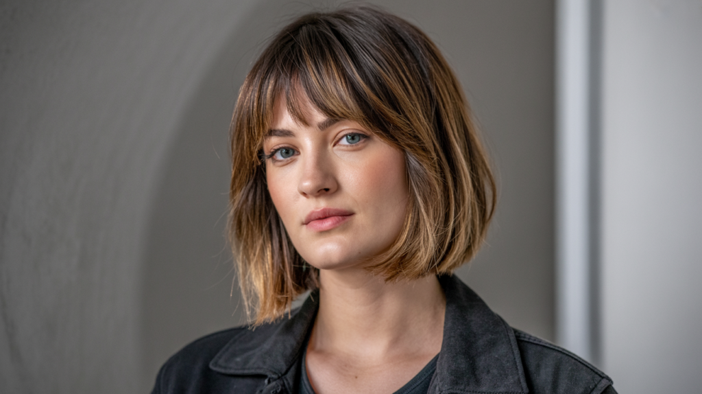 The fringe creates a face-framing effect that makes you look more youthful. This haircut is ideal for adding edge while maintaining versatility in styling.