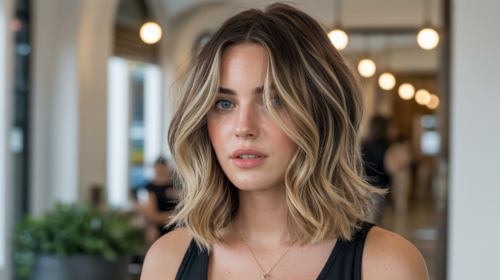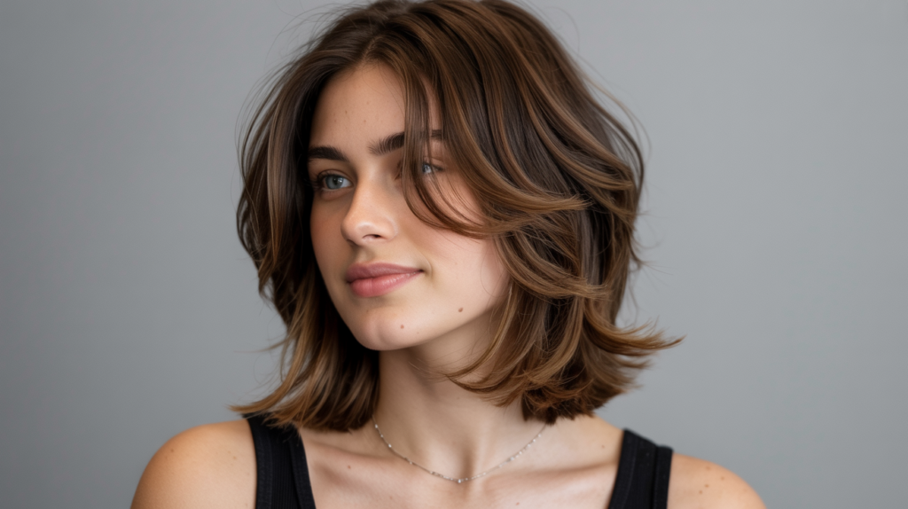 The modern shaggy lob, with its textured layers and clean finish, brings an edgy twist to the traditional lob cut. It’s versatile and functional!