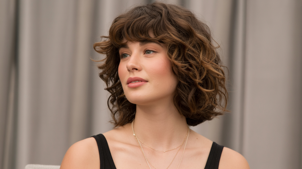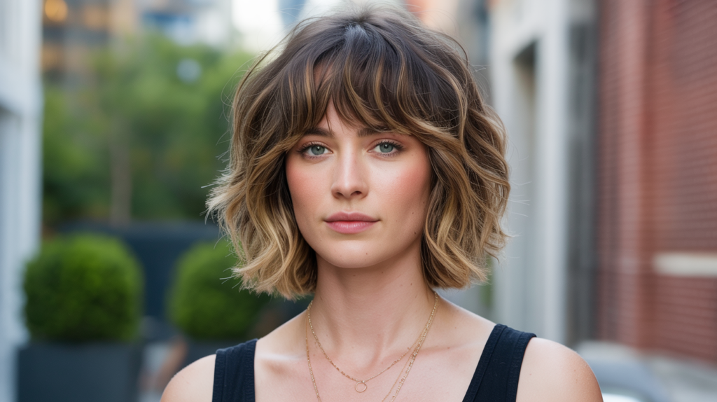 Combining a shorter length with bangs gives a more structured style that beautifully frames the face. It can be styled straight or wavy.