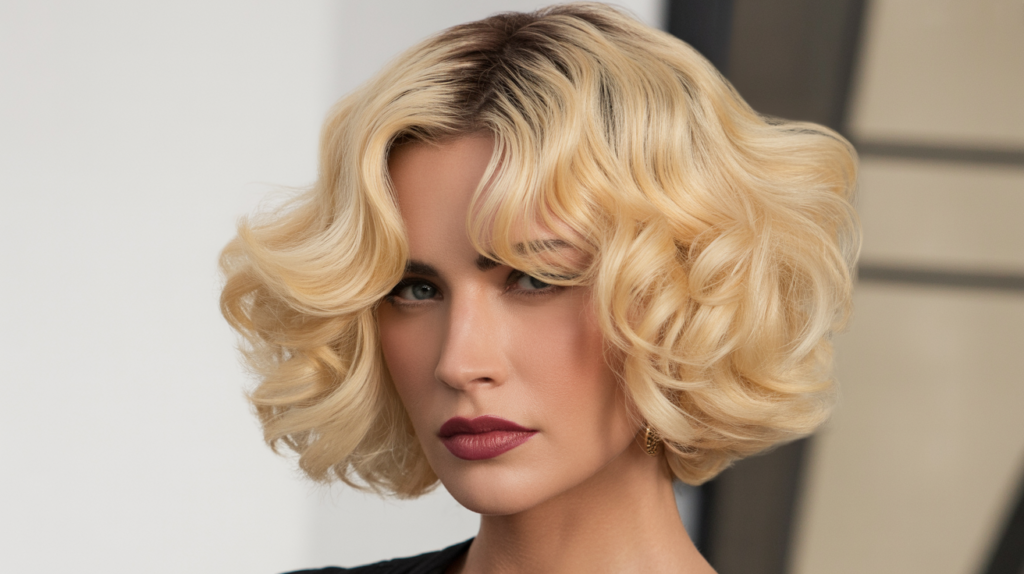Bold waves complemented by a blonde hue for a statement-making look. This goes well for ladies working in corporate offices who want a cute hairstyle for an elegant formal appearance.