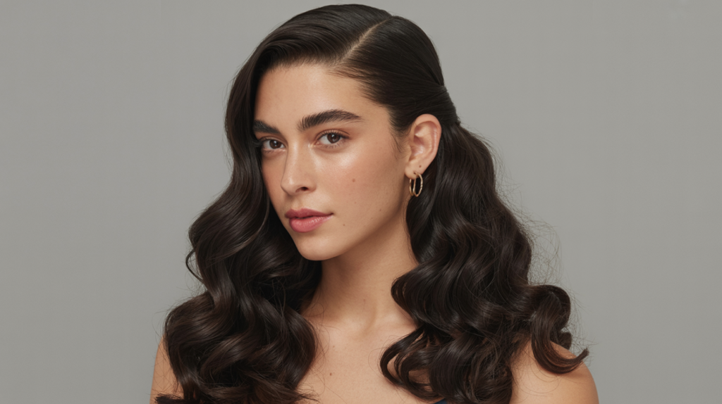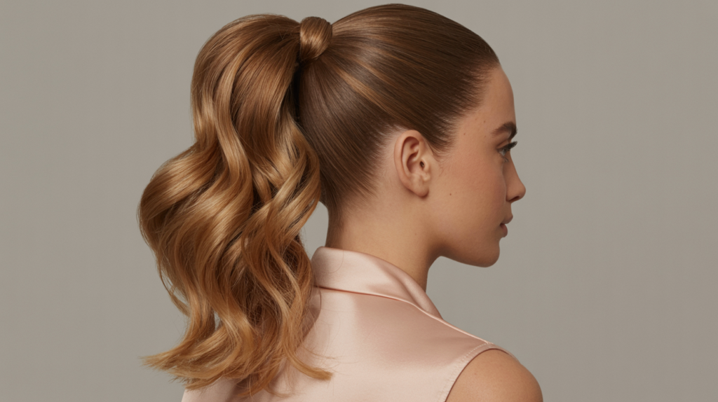 3. Sleek Voluminous Half-Up Pony with Polished Waves
