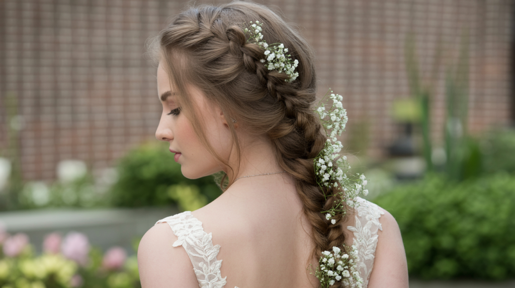 14. Ethereal Mermaid Side Braid with Delicate Baby’s Breath